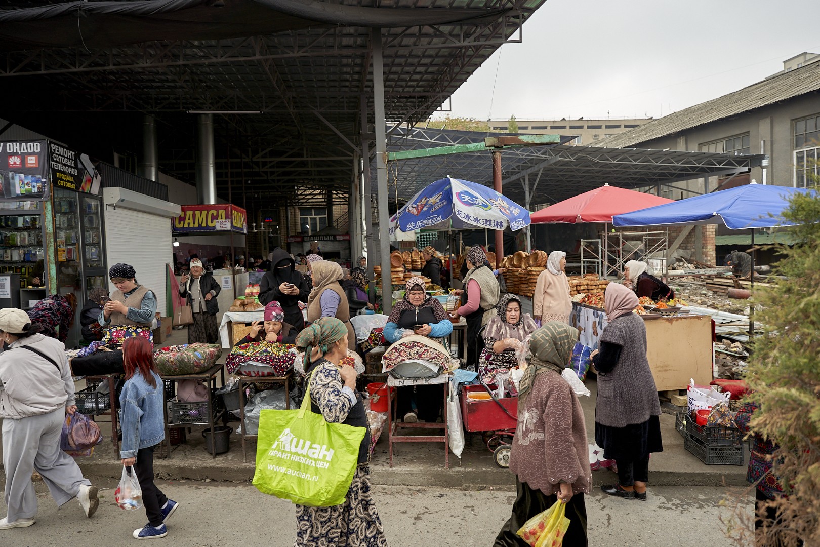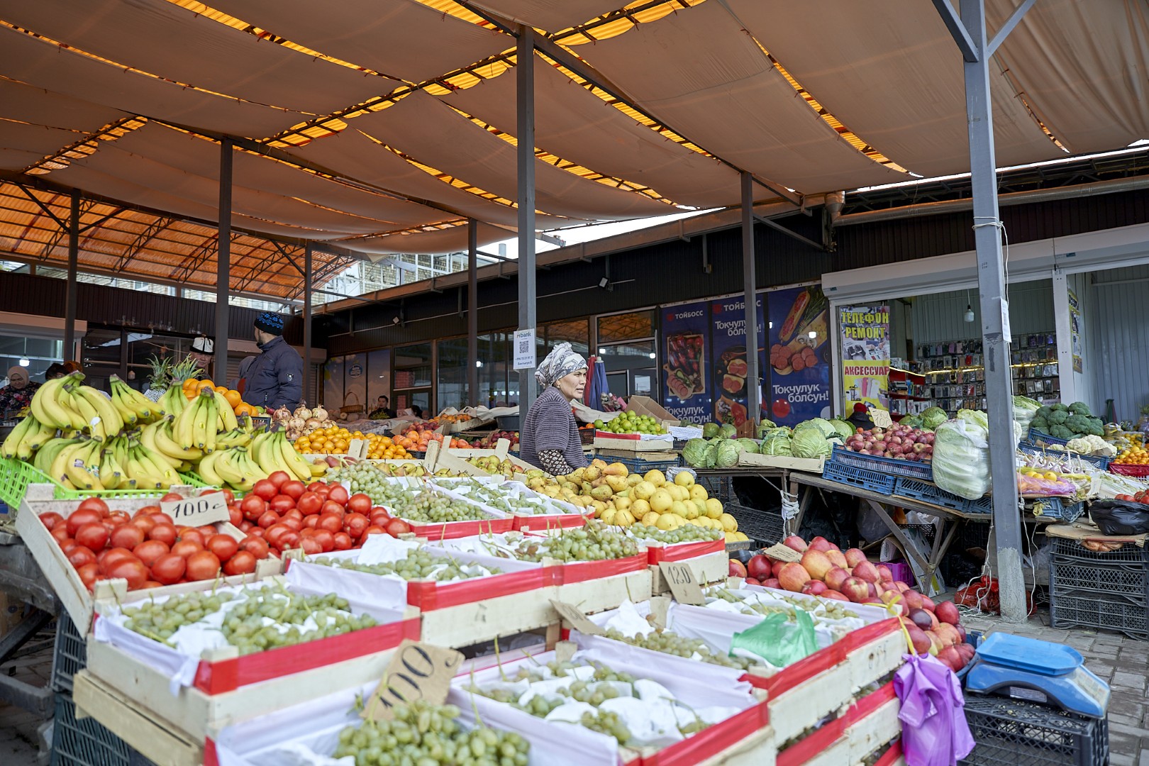 During the Soviet period, bazaars became part of a complex system of public-private relations. They became known as “kolkhoz markets,” after the collective farms that supplied them. They were divided into a food markets, mixed markets, where both agricultural products and manufactured goods were traded, and feed markets, where livestock, poultry and fodder for cattle were traded. The old bazaar in Osh was a mixed type of bazaar.